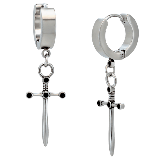 Hypoallergenic 316L Stainless Steel Medieval Dagger Huggies Hoop Earrings – Steel Plated Ear Piercing Design