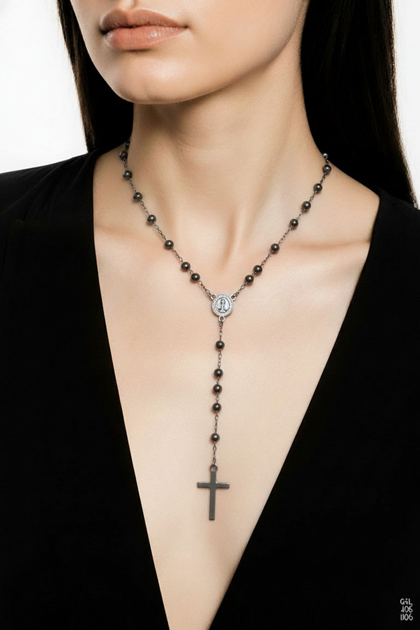 Hypoallergenic 316L Stainless Steel Huggies with 5 Rings & Dangling Cross – Steel Clip-On Earrings