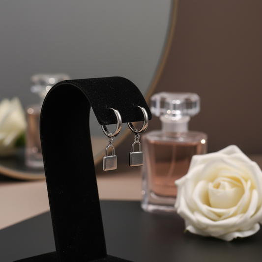 14K Gold Plated Little Lock Charm Huggies Hoop Earrings – Stainless Steel Base