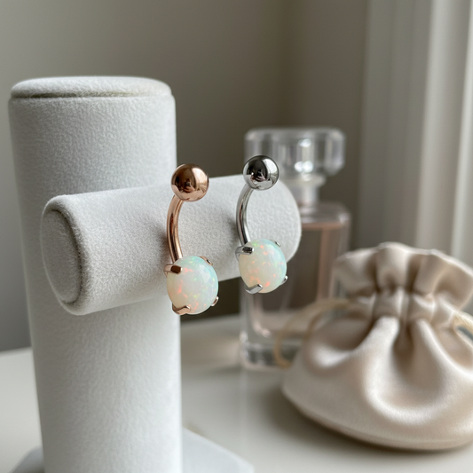 Regular price $3.40 USDRegular priceUnit price / perSale price $3.40 USD316L Surgical Steel Prong Set Opalite Resemble Belly Navel Ring Steel Color - 8x5mm Ball - 14g Thickness - 10mm Length