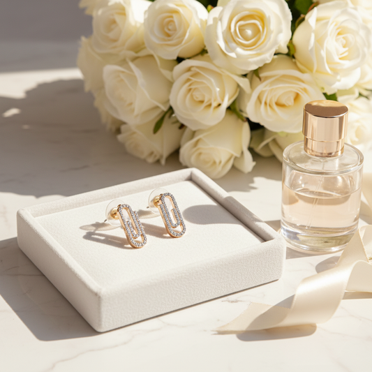 Gold Paperclip Stud Earrings – Crystal Rhinestones on Brass