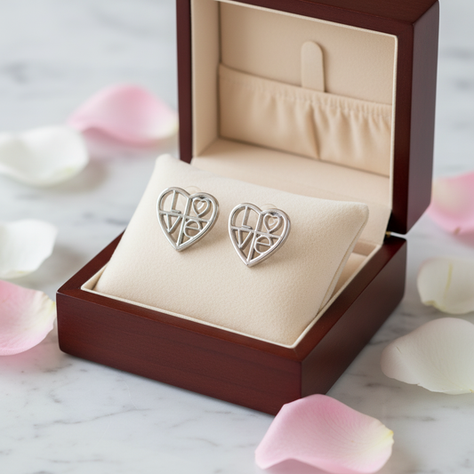 925 Sterling Silver 'LOVE' Heart Cutout Stud Earrings – Sweet & Sentimental Style