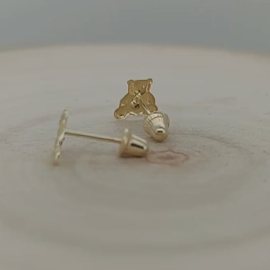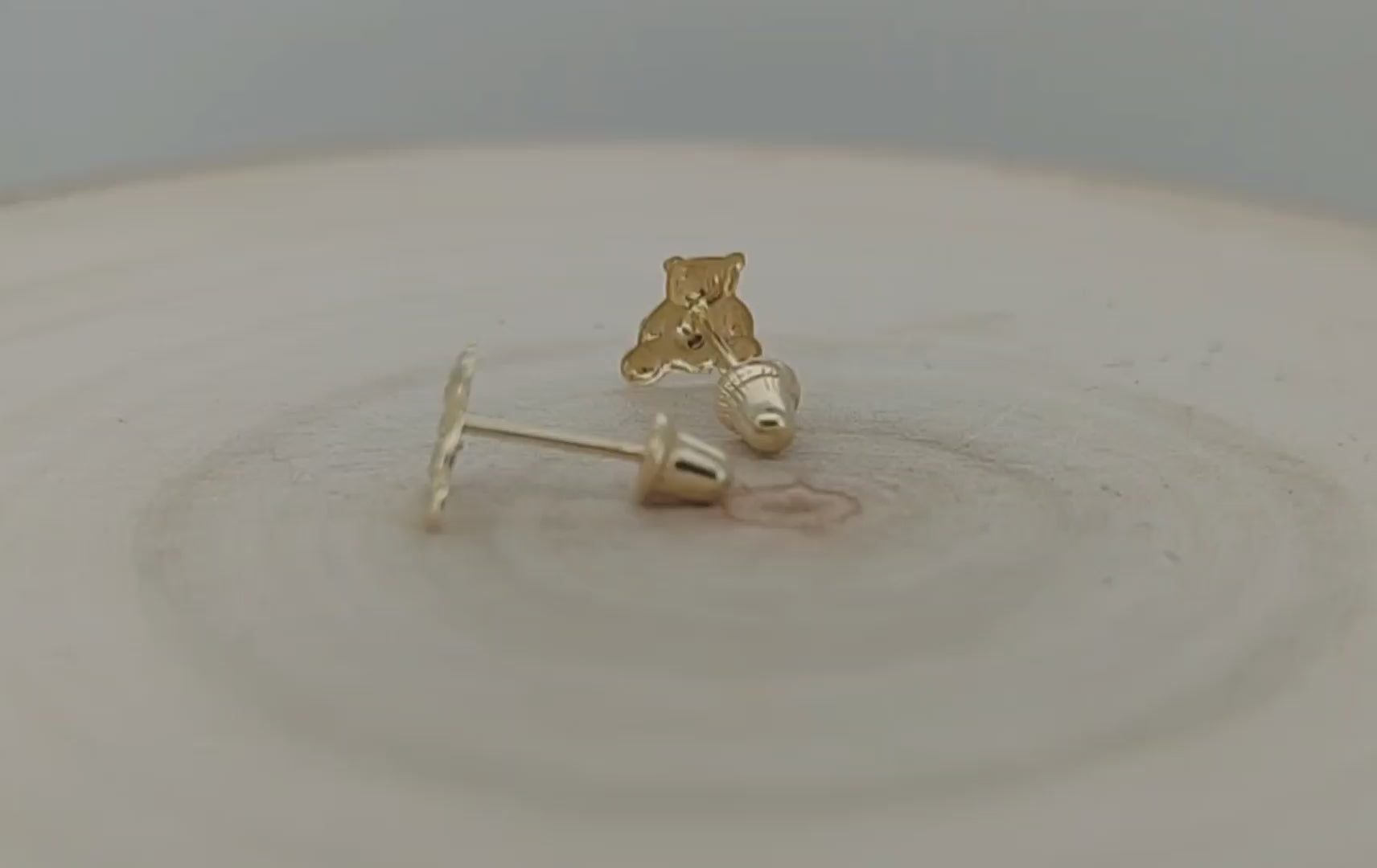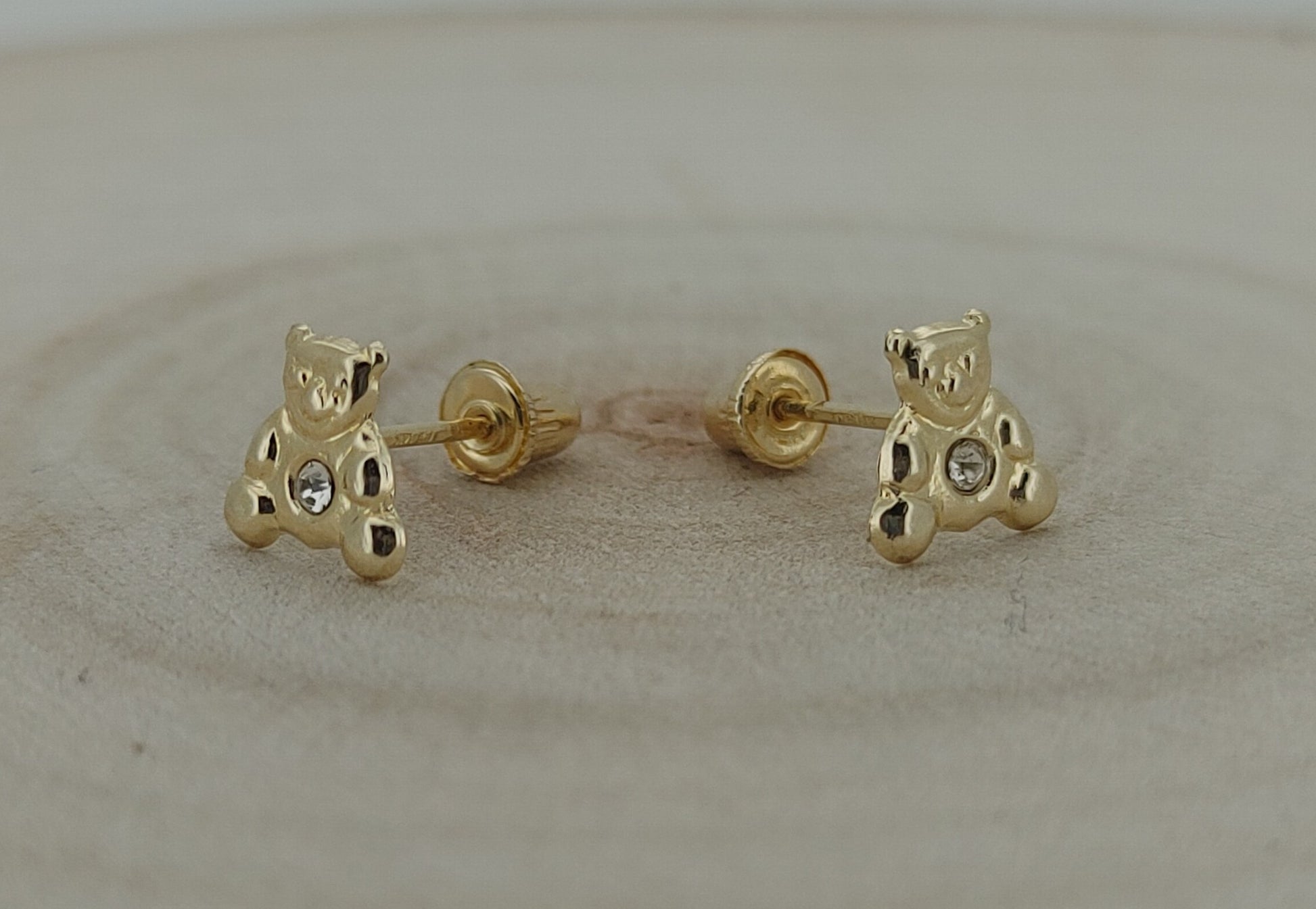 14K Solid Gold Baby Bear Earrings with Cubic Zirconia – Adorable & Safe for Infants