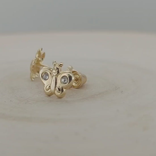 🦋 14K Solid Gold Butterfly Baby Earrings with CZ
