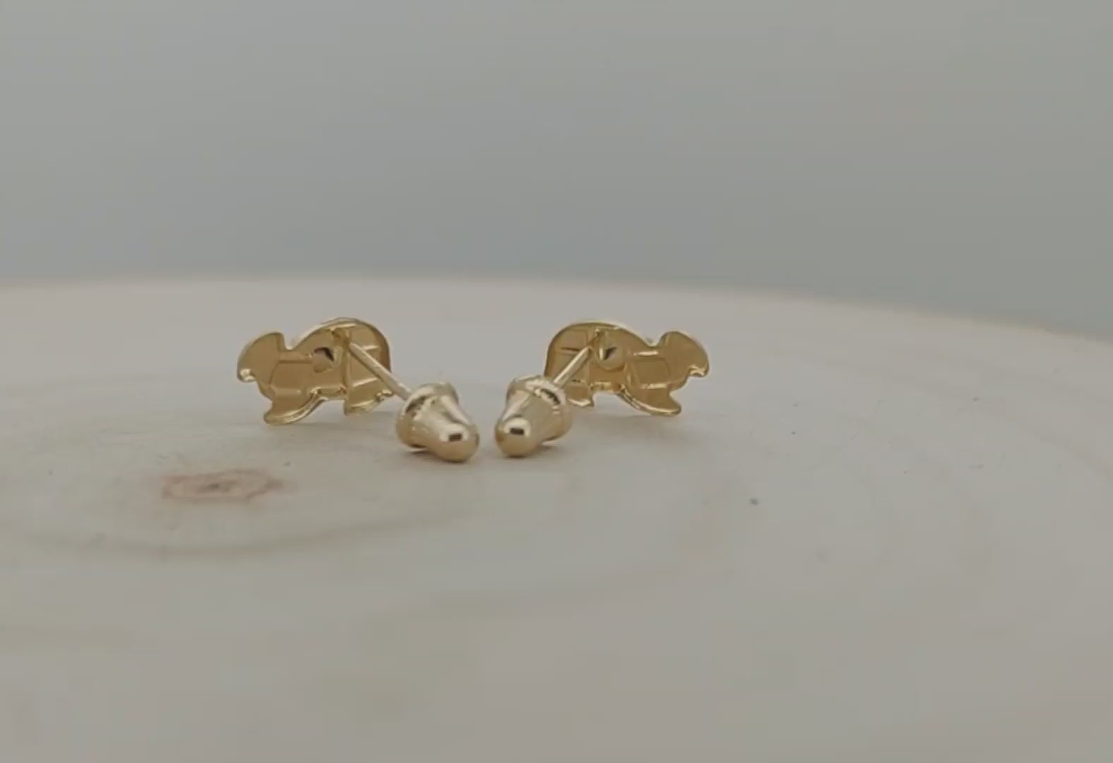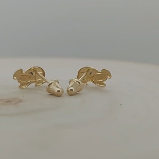 14K Solid Gold Turtle Baby Earrings with CZ – Safe Screw Backs for Little Ears