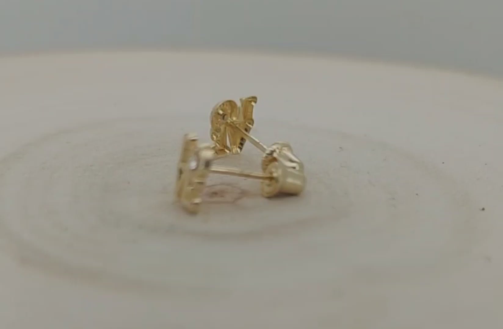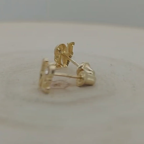14K Solid Gold Love-Carved Baby Earrings with CZ – Secure Screw Backs for Little Ears