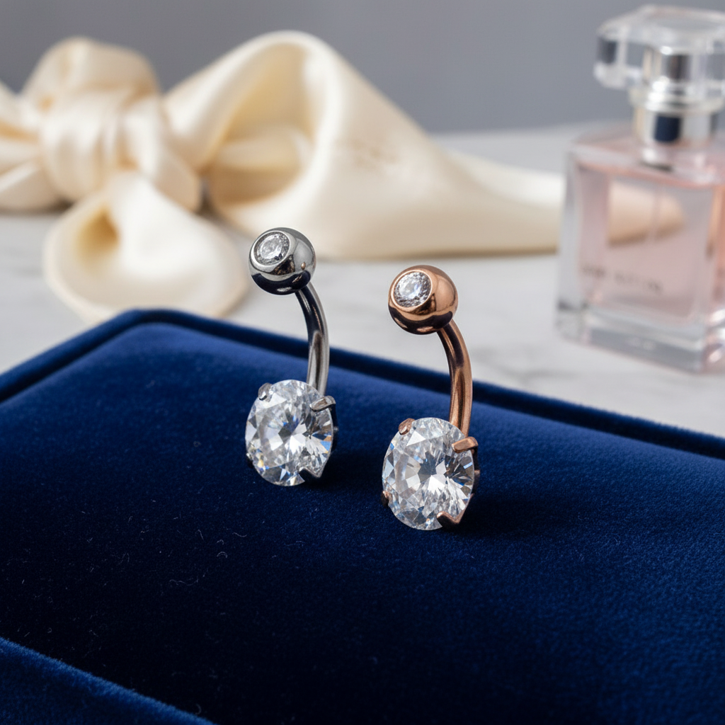 Sleek, secure, and effortlessly radiant—this belly ring features a prong-set cubic zirconia that catches the light from every angle. Crafted from 316L surgical-grade stainless steel, it’s hypoallergenic, tarnish-resistant, and built for long-lasting wear.