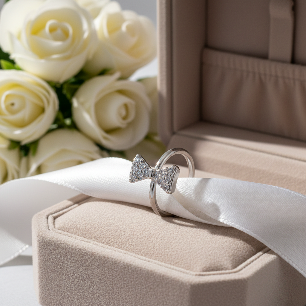 - Design: CZ-encrusted bow tie centerpiece for a charming finish