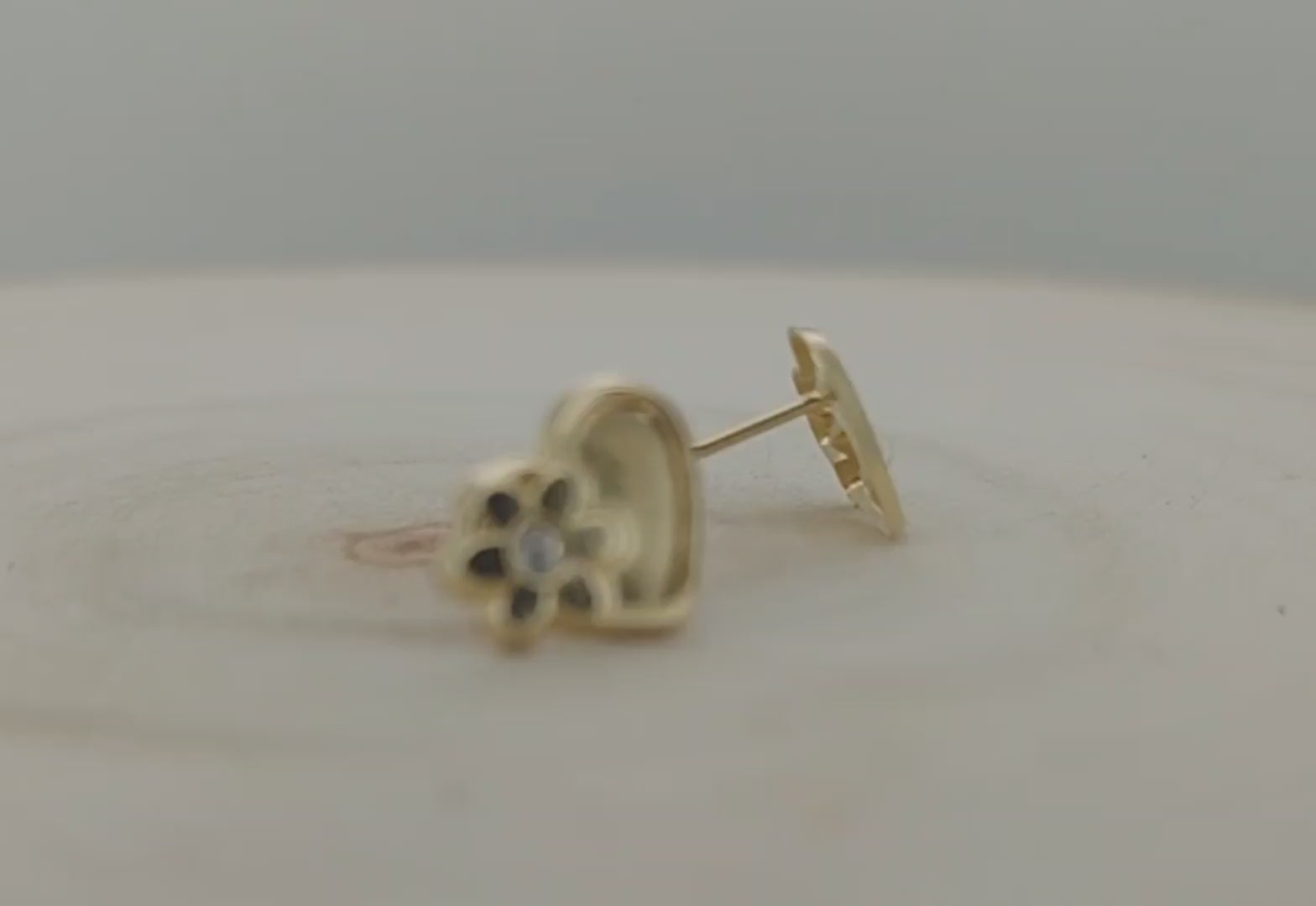 Dainty 14K Gold Heart Baby Earrings with CZ β Sweet & Safe for Little Ears