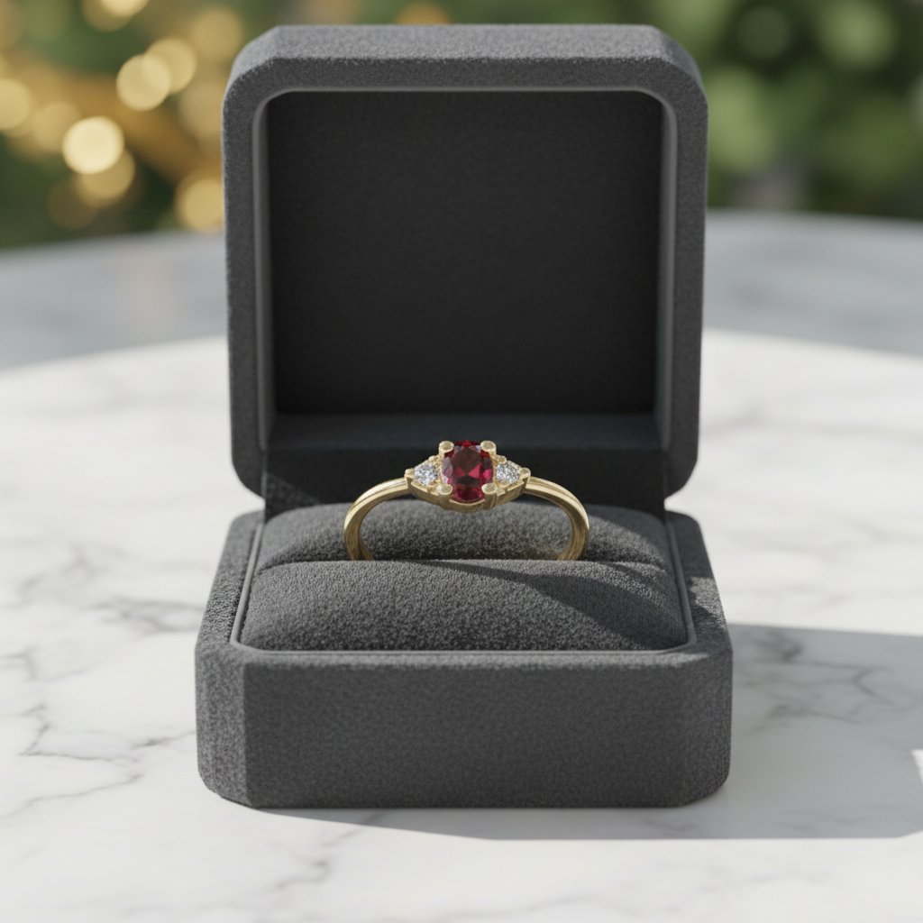 - Design: Double CZ side stones + oval CZ centerpiece in prong setting