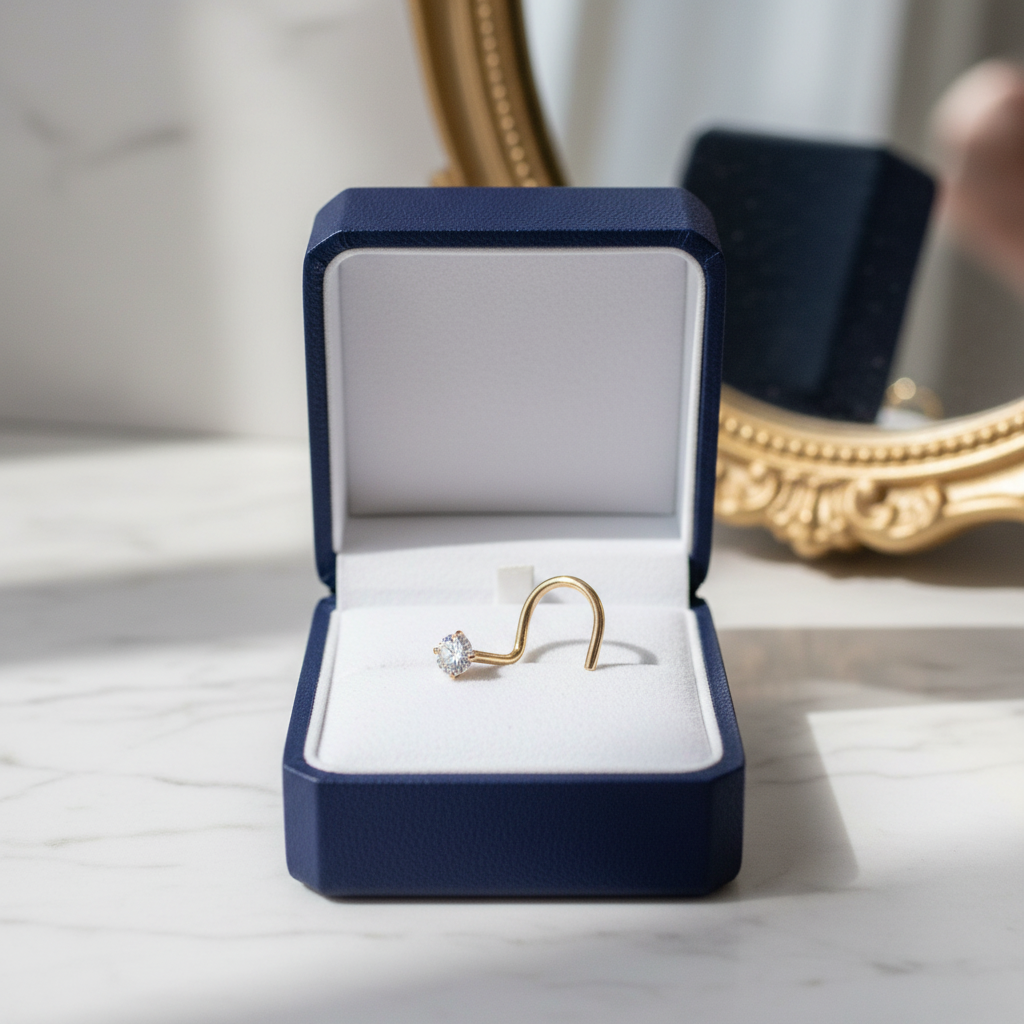 Add a touch of timeless elegance to your piercing with this 14K solid gold nose ring, featuring a secure prong-set gem and a comfortable screw-style post. Designed for both beauty and durability, this piece is perfect for everyday wear or special occasions.